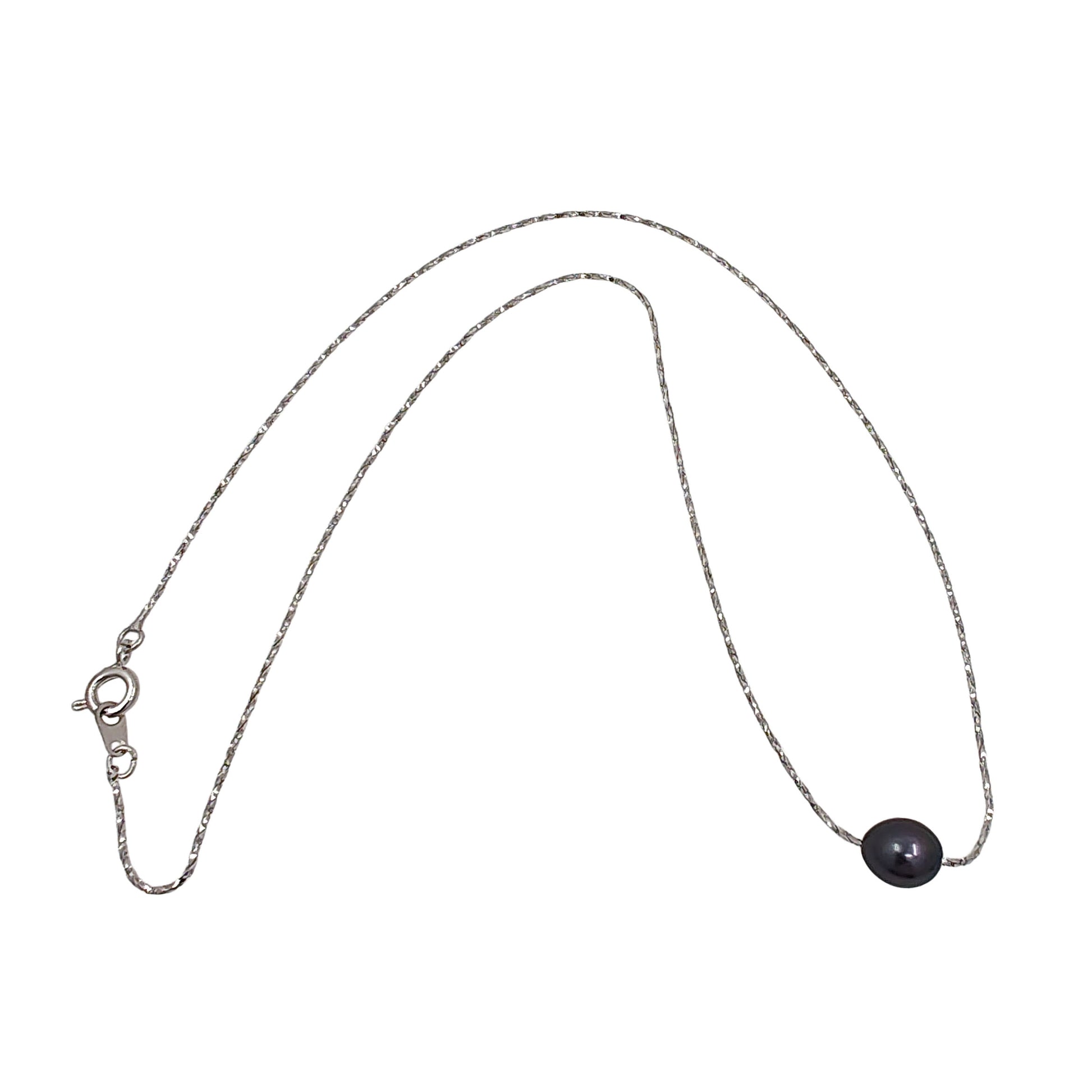 7-8mm Dark Gray Tahitian Pearl Slide 18K White Gold Necklace