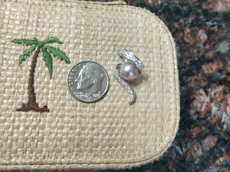 This light silvery pink 8.1mm naturally colored Edison Pearl is beautifully set in this Sterling Silver Swirl Pendant lined with cubic zirconia. It looks so expensive! *The chain pictured is not included.
