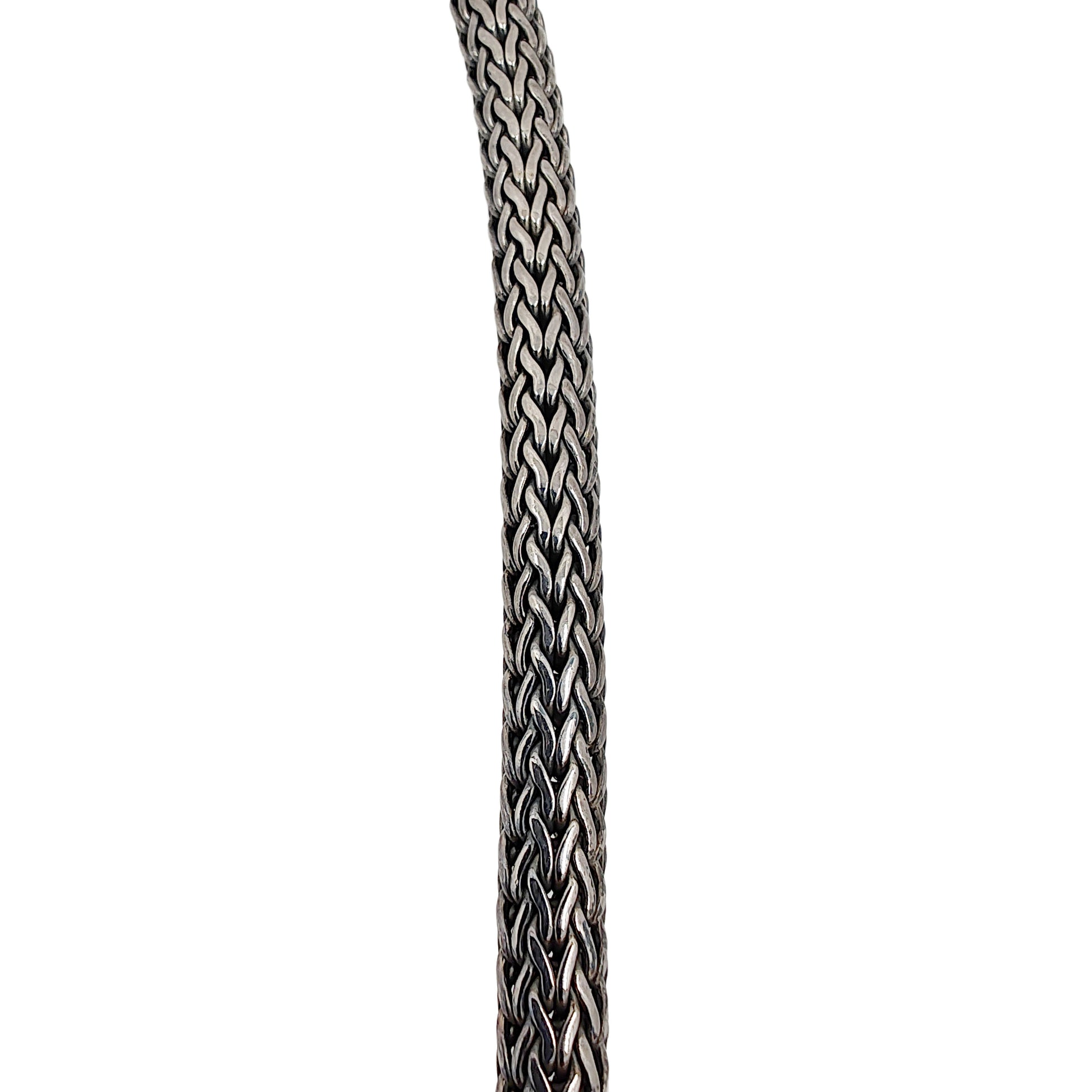 Estate J Hardy sterling silver woven wheat chain. This woven wheat chain is crafted in sterling silver by J Hardy. The J Hardy classic chain necklace is 6.5mm wide and 18" long. The stylized clasp is marked by the maker and 925.